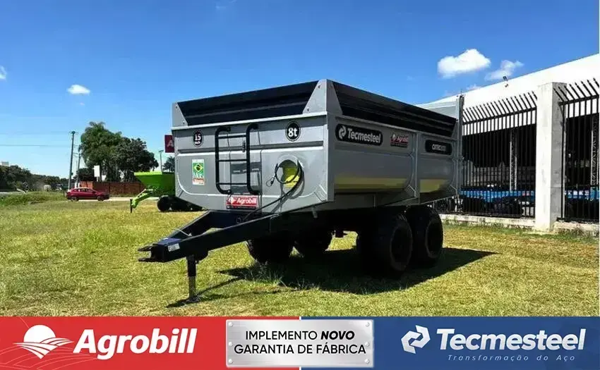 A carreta basculante CBTEC 8000 é um implemento agrícola projetado para o transporte eficiente de cargas em propriedades rurais. Com capacidade de carga de 8 toneladas e volume 8,6m³, possui sistema basculante hidráulico que facilita o descarregamento de materiais. Equipada com sistema de eixo tandem e cilindro de dupla ação, oferece maior estabilidade e segurança durante o uso.