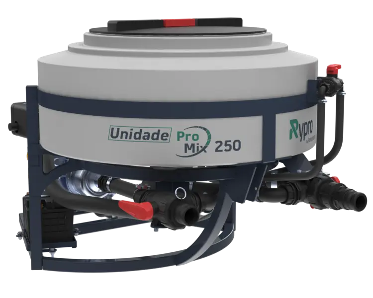 As Unidades Pro Mix da Rypro agilizam a incorporação de defensivos agrícolas, líquidos ou em pó, e o abastecimento do pulverizador. Possuem sistema duplo de agitação interna que garante a qualidade da calda, além do fácil esgotamento e limpeza dos equipamentos.